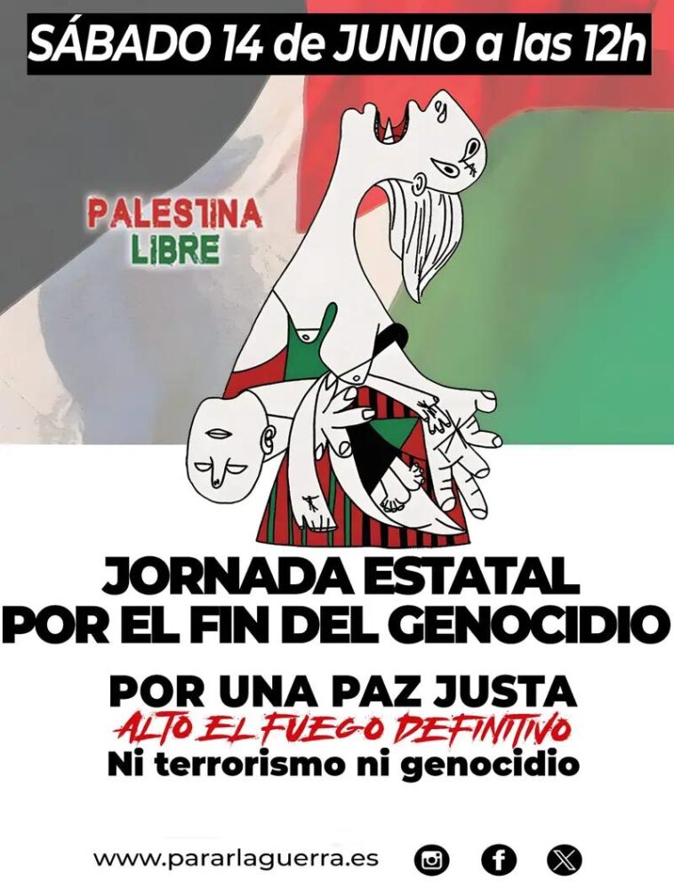 La Declaración acaba llamando a salir a la calle “sin distinción de ideologías o credos” y “a apoyar la Jornada Estatal por el Fin del Genocidio del próximo 14 de junio”.